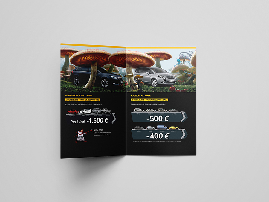 J’ai travaillé pendant quatre ans pour Opel Allemagne. J’ai eu à cette occasion la possibilité de créer de nombreux visuels et mises en page en fonction des thèmes choisis par le client.