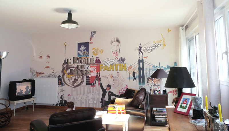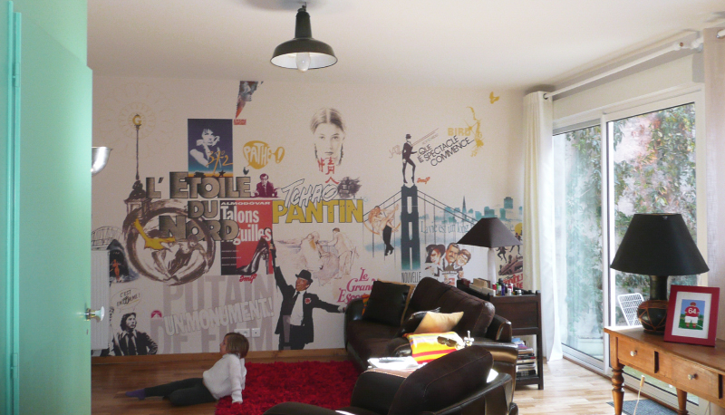 Création d'un visuel sur le thème du cinéma pour habiller le salon d'un particulier cinéphile.