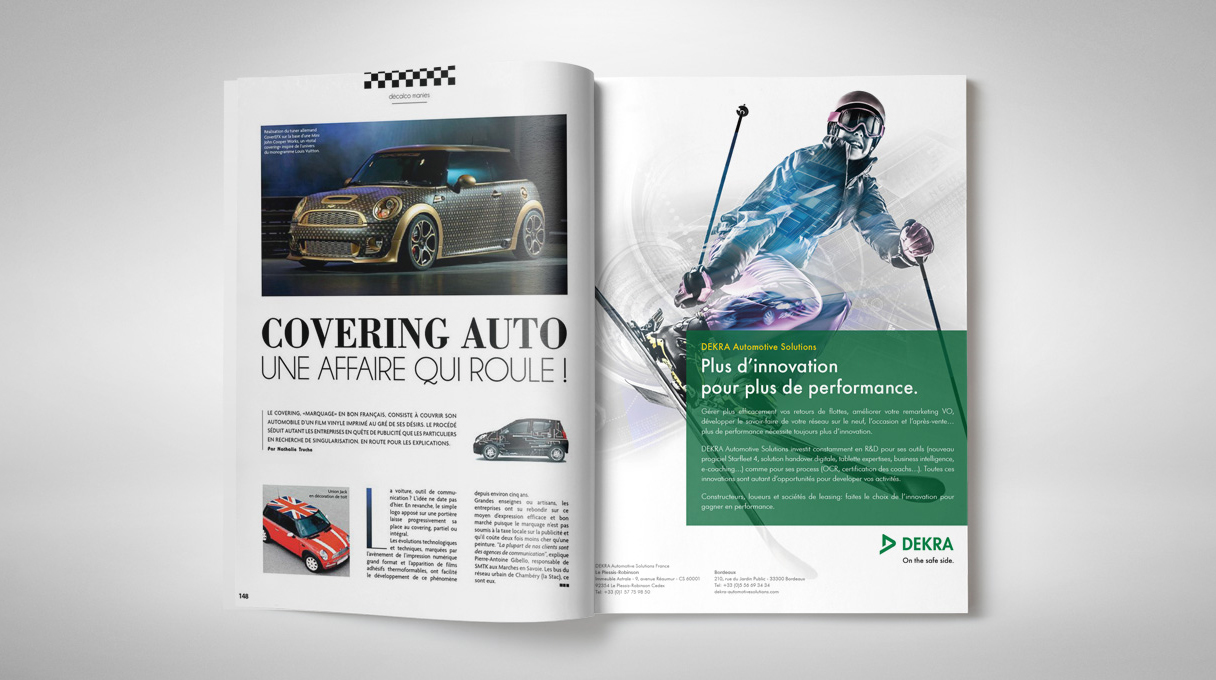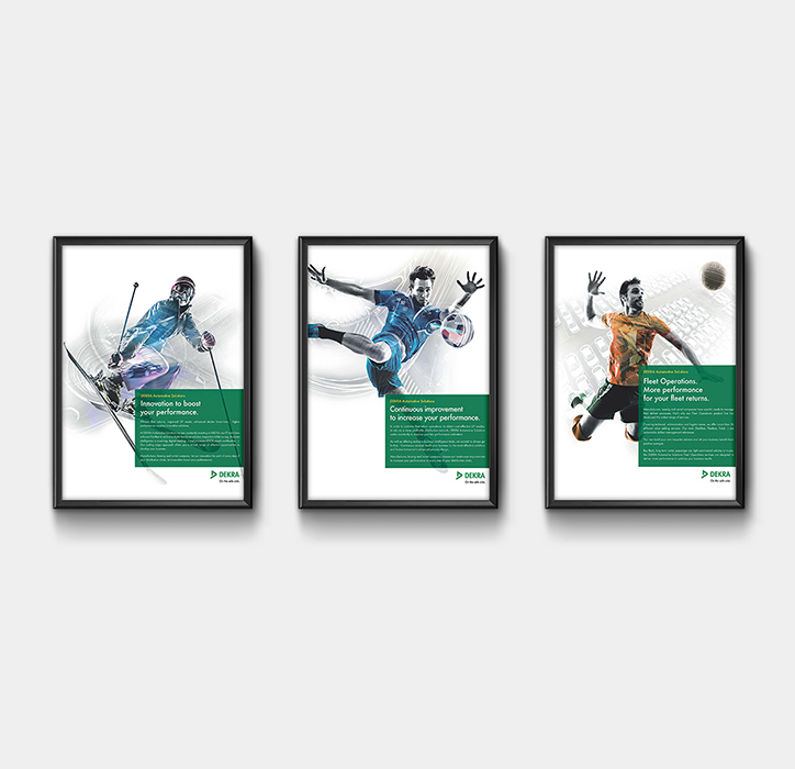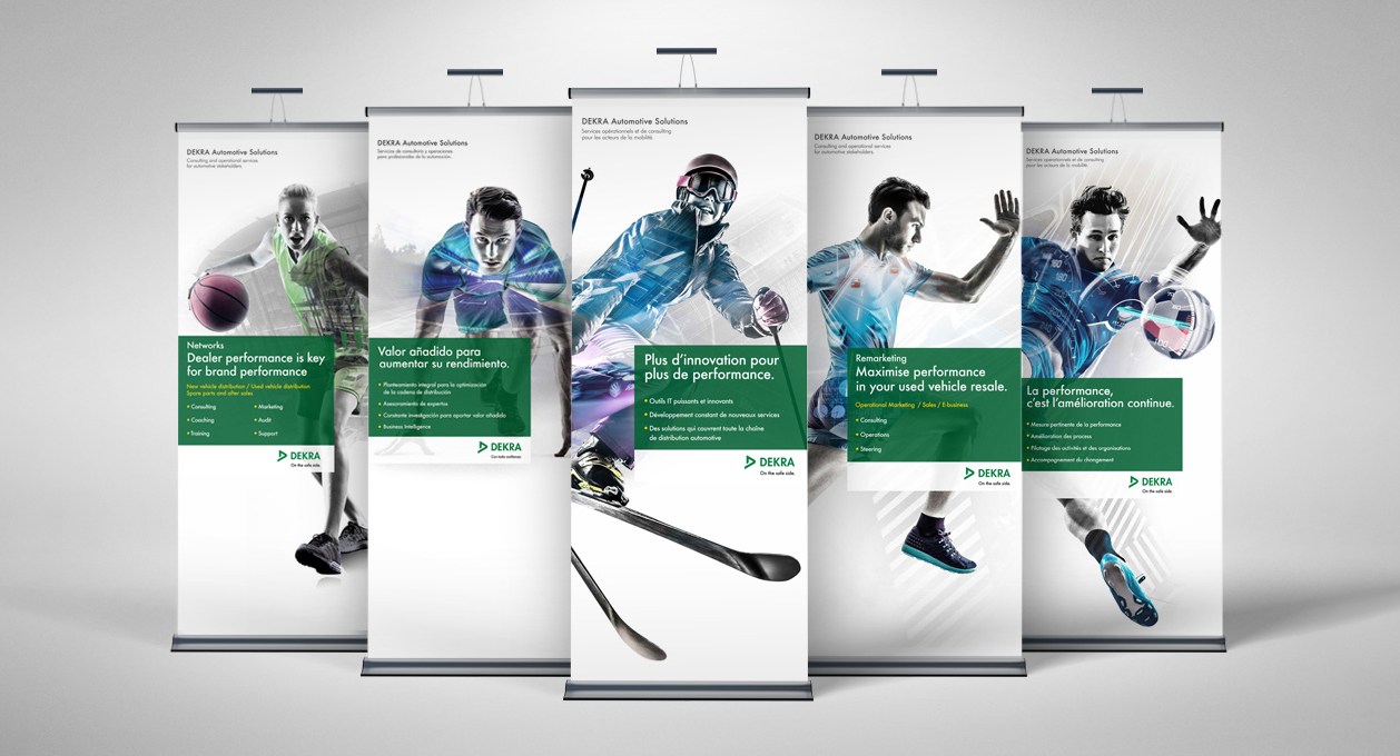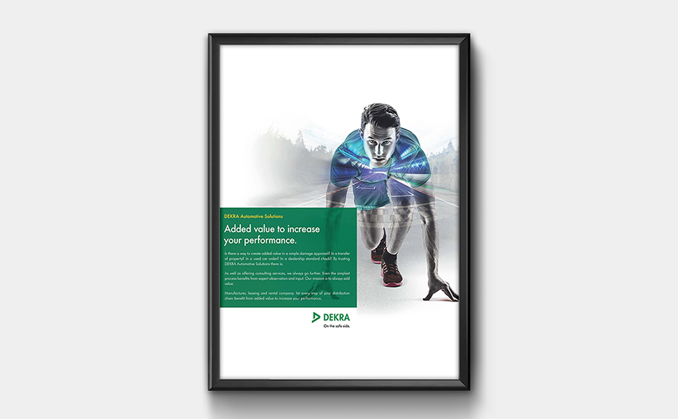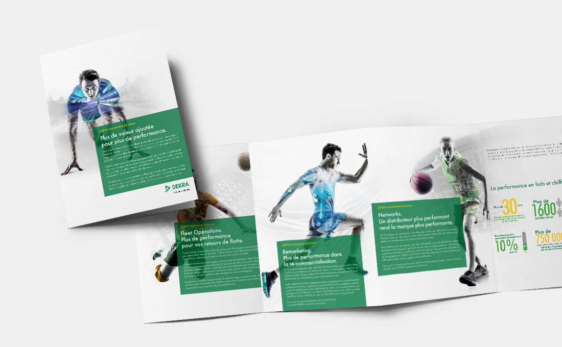 J’ai travaillé sur la conception des visuels de la nouvelle communication basée sur le concept de la performance, en mêlant sportifs de haut niveau et éléments liés à l’automobile, avec des codes qui respectent l’image du groupe DEKRA.